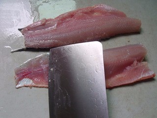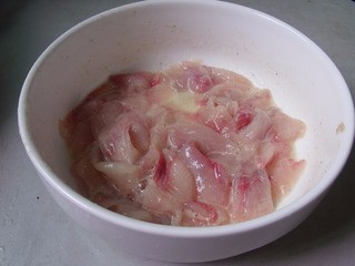 ●片好的魚(yú)片,一定要用鹽搓洗,鹽可以讓魚(yú)片的水分掉一些,魚(yú)肉緊致彈性好。不容易碎,洗凈污水,換三遍水,魚(yú)片成嫩白透明的為好。