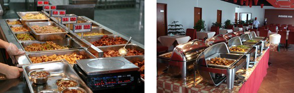 如果貴方每餐人均餐標(biāo)在20元以上,我們將考慮采取此種形式。每餐菜品不少于20種,除主葷菜由我方工作人員酌情掌握外,其余菜品均由就餐者根據(jù)個(gè)人口味及食量自盛。此外,現(xiàn)場還有主食、粥、湯、水果、點(diǎn)心、酸奶等十余種供選擇。